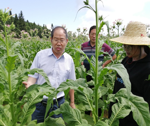 7月10日丁伟教授、刘志勇、车腾飞站长一同前往苍岭基地视察烟株生长及发病状况,重点介绍了青枯病的发病特点及救治措施。